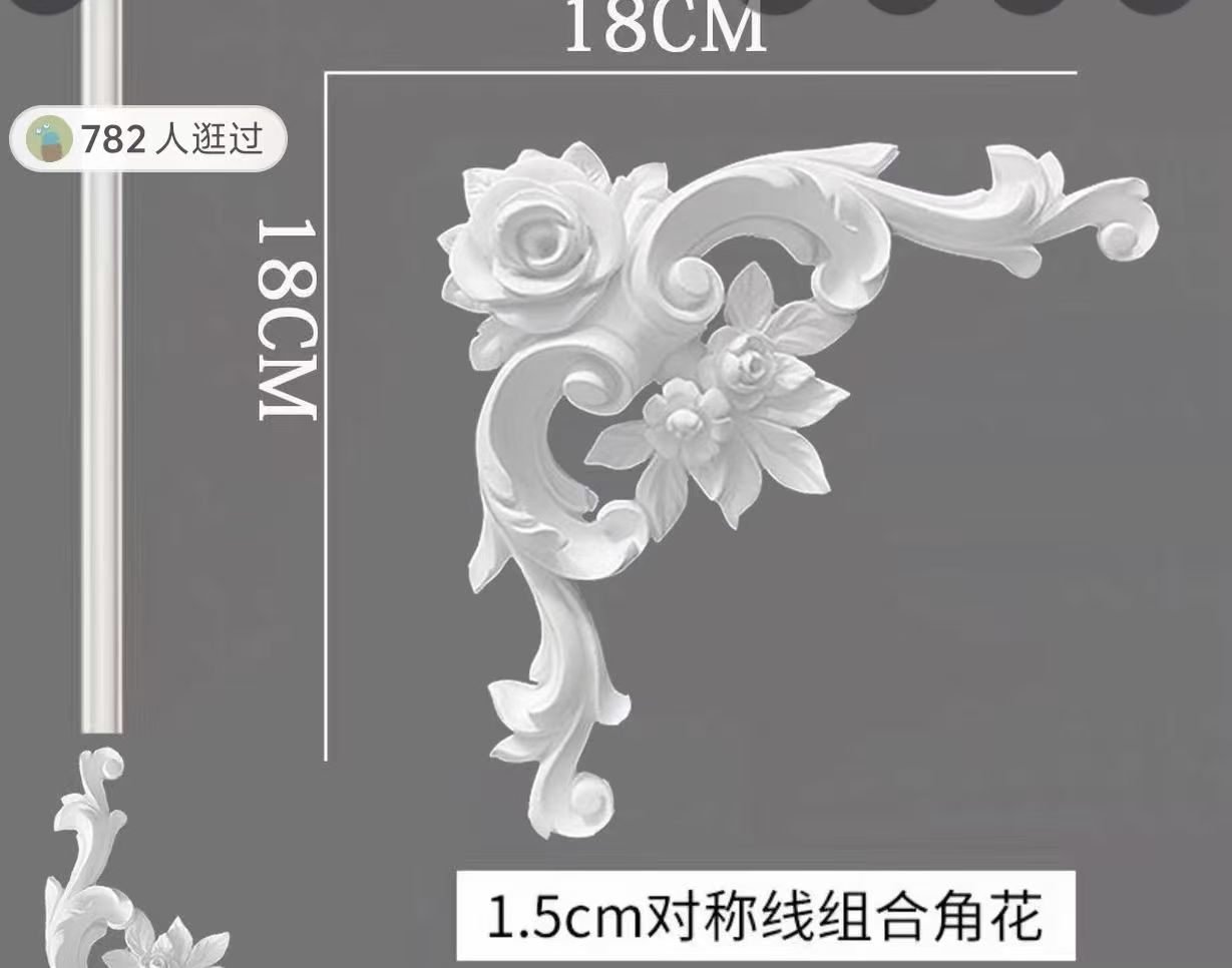 1. 材质与工艺:以高强石膏为主,常添加纤维/聚合物增强韧性;有模具预制的素线、浮雕线(卷草、莨苕叶、花卉),可刷白/奶白/浅灰漆,防火隔音、环保..,适合室内。